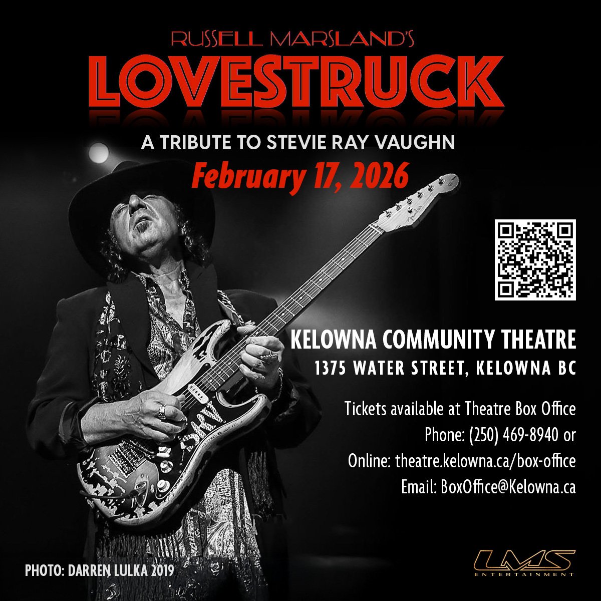 Russell and Stevie both had much love and Respect for Jimi Hendrix, BB King, Albert Collins, Albert King along with Wes Montgomery, Dick Dale and many other guitar greats! LOVESTRUCK celebrates the music of the Legendary Stevie Ray Vaughan, tapping into the fire and passion of this incredible artist who left us way to soon. RUSSELL EARL MARSLAND & LOVESTRUCK pays respect to the life of SRV through his music.