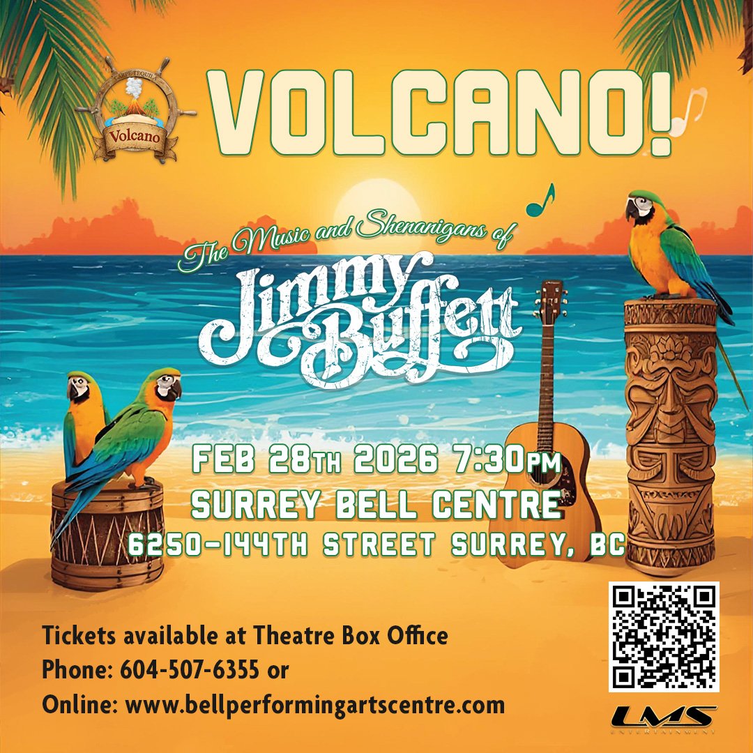 Surrey Bell Centre 6250 – 144th Street, Surrey, BCAre you ready for some fun? Get ready for Volcano! Canada’s Jimmy Buffett Experience featuring the music and shenanigans of Jimmy Buffett. Alex Whittaker and his 8 piece band celebrate…